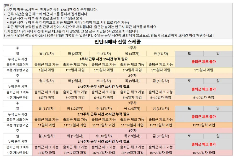 4기 인턴 여러분의 원활한 수료를 위하여, 출퇴근 및 과업 진행 가이드를 정리하였습니다.