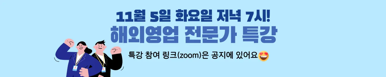 11/5 화요일 저녁 7시부터 해외영업 전문가 특강이 비대면으로 진행됩니다.