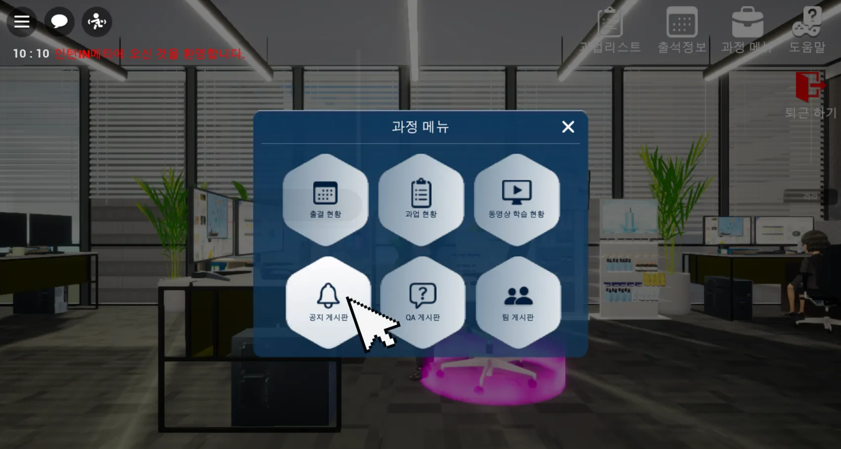 인턴IN메타 오른쪽 상단 [과정 메뉴]를 클릭합니다.