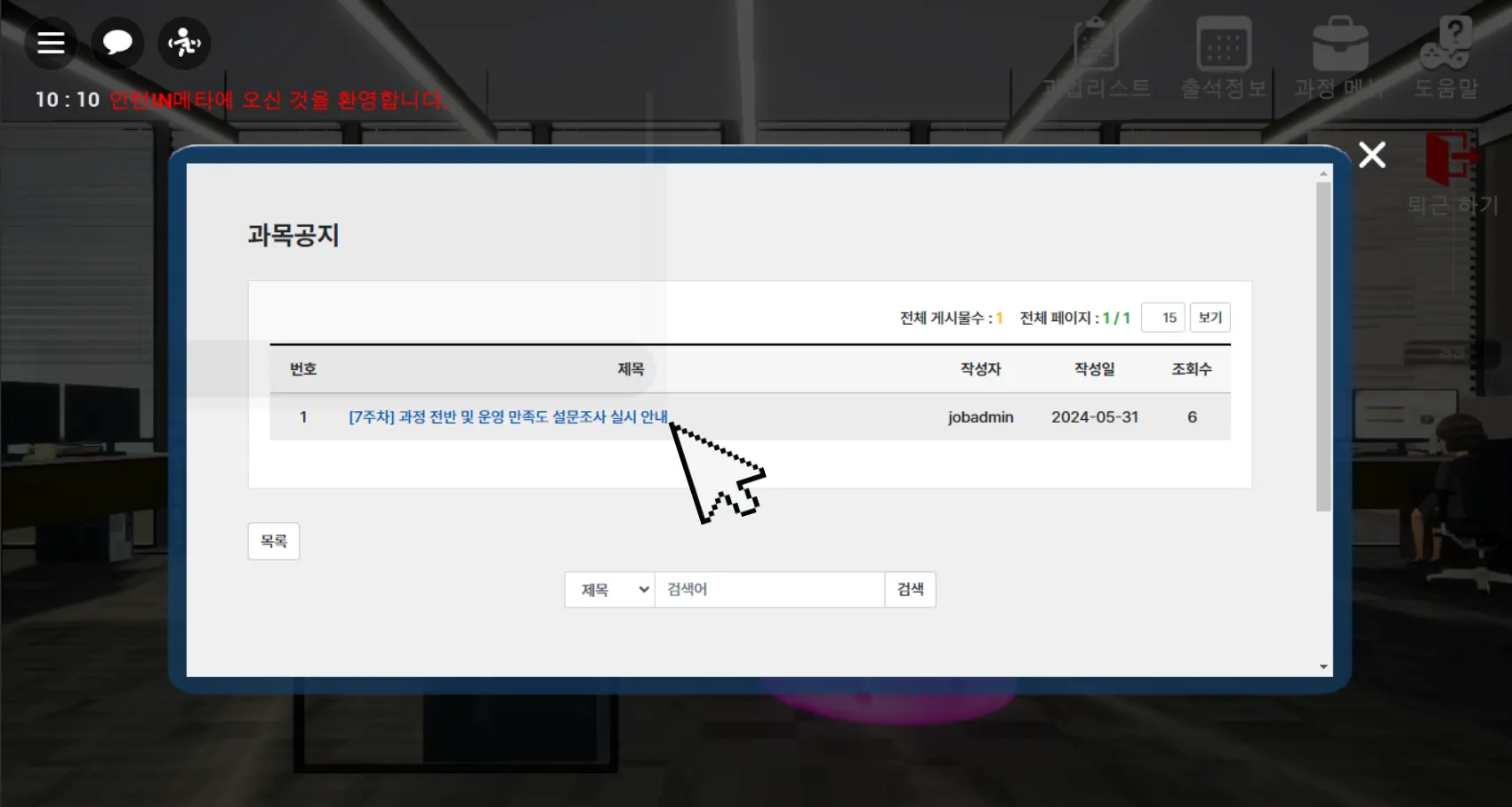 게시판에서 만족도 설문조사 공지를 클릭합니다.