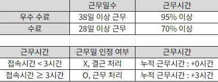 최소 3시간을 근무해야만 해당 일자가 정상근무일로 처리됩니다.